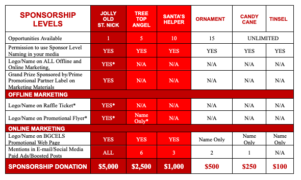 *Sponsorship must be secured by October 2 to be included on initial run of tickets and /or promotional flyers.