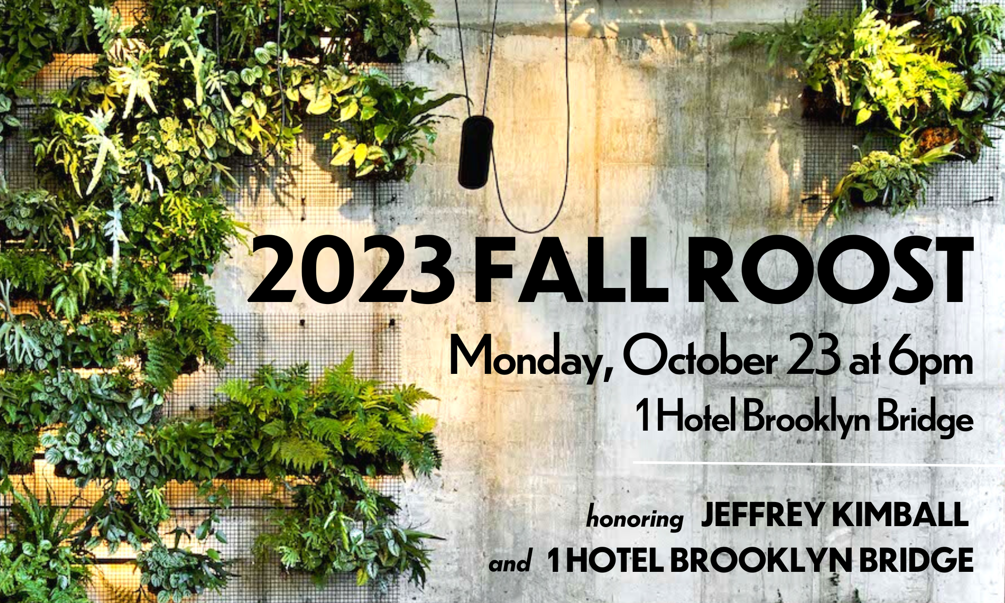 On Monday, October 23, NYC Audubon's 2023 Fall Roost gala fundraiser celebrated two champions of sustainability and urban biodiversity at the stunning 1 Hotel Brooklyn Bridge.