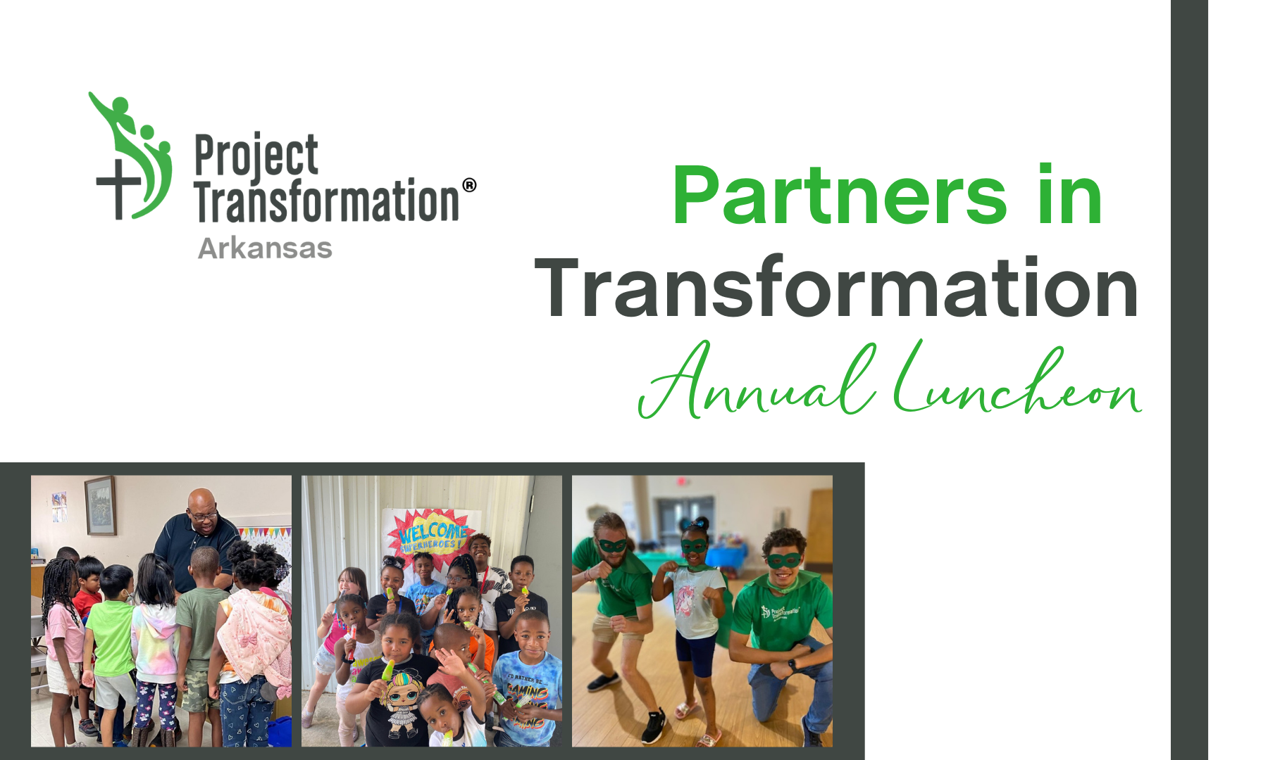 Join Project Transformation Arkansas for a one-hour fundraising luncheon to share our mission and impact, while inspiring people to support our work. You'll hear from supporters including a young adult participant from 2023 who will share their stories of transformation. Enjoy a meal, entertainment, and fellowship all while supporting a great cause.