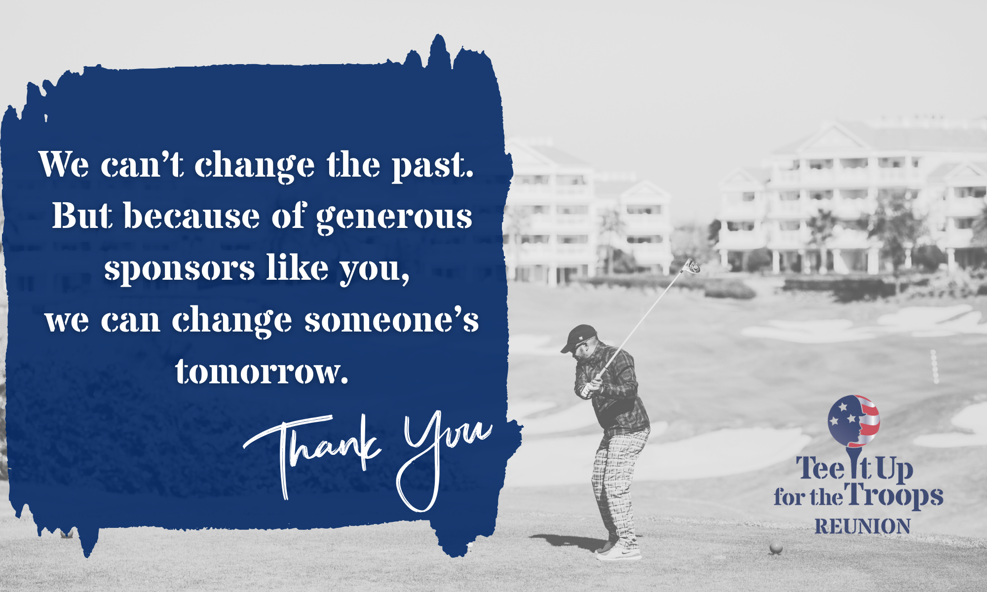 Tee It Up for the Troops relies on companies, corporations, foundations, and individual REUNION sponsors and donors to assist us in reuniting combat veterans and helping them transition from the battlefront to the Homefront. This includes help for the hidden wounds of war, like anxiety, depression, isolation, and suicide.